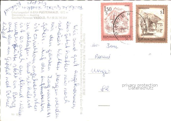 71972793 alte Postkarte Pusterwald Gasthaus Pension Vasold postalisch gelaufen Erhaltung siehe scans KatCode: 11390226060815