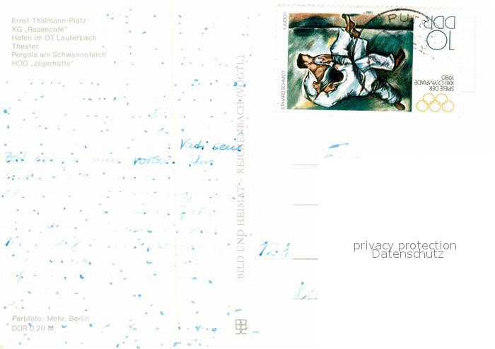 72767162 alte Postkarte Putbus Ruegen Ernst Thaelmann Platz KG Rosencafe Hafen Theater Pergola Schwanenteich HOG Jaegerhuette postalisch gelaufen Erhaltung siehe scans [WerneD78] KatCode: 11110013061028