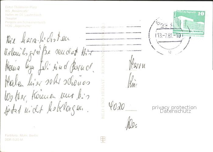 72370903 alte Postkarte Putbus Ruegen Ernst-Thaelmann-Platz Theater HOG-Jaegerhuette postalisch gelaufen Erhaltung siehe scans KatCode: 11110013061028