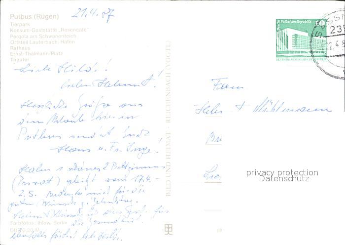 alte Postkarte Putbus Ruegen Hafen Tierpark Theater postalisch gelaufen Erhaltung siehe scans