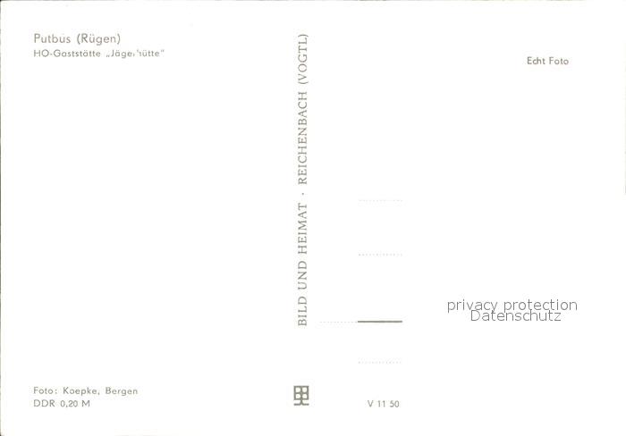 72091892 Putbus Ruegen HO Gasstaette Jaegerhuette postalisch nicht gelaufen Erhaltung siehe scans KatCode: 11110013061028