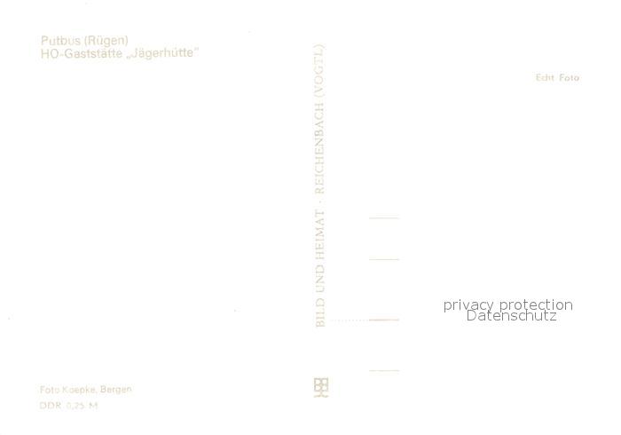 73095116 Putbus Ruegen HO Gaststaette Jaegerhuette postalisch nicht gelaufen Erhaltung siehe scans [KathaD81] KatCode: 11110013061028