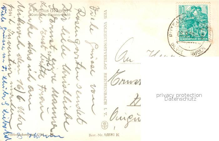 73547419 alte Postkarte Putbus Ruegen Konsum Rosen Cafe postalisch gelaufen Erhaltung siehe scans [WerneD78] KatCode: 11110013061028