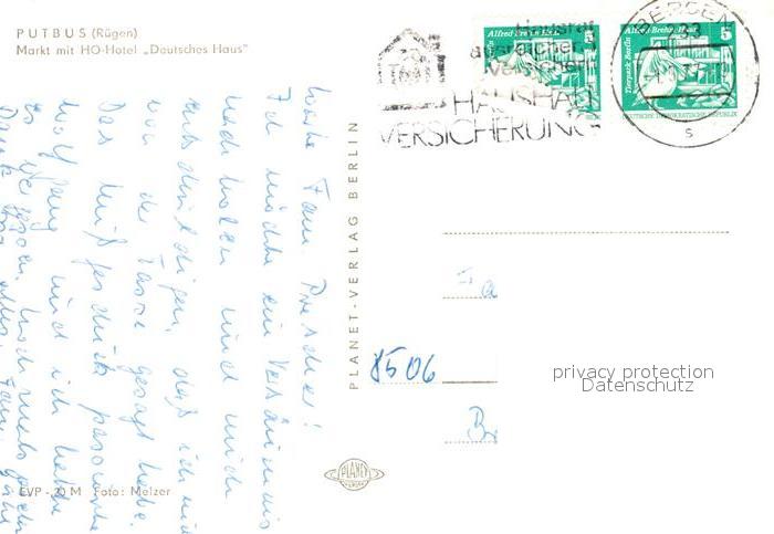 73038425 alte Postkarte Putbus Ruegen Markt HO Hotel Deutsches Haus postalisch gelaufen Erhaltung siehe scans [KathaD81] KatCode: 11110013061028