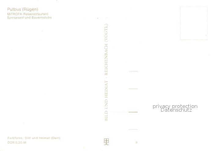 73721960 Putbus Ruegen Mitropa Reiserestaurant Putbus Speisesaal Bauernstube postalisch nicht gelaufen Erhaltung siehe scans [LiesaD40] KatCode: 11110013061028