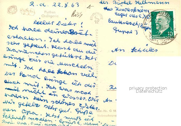 73135632 alte Postkarte Putbus Ruegen Orangerie postalisch gelaufen Erhaltung siehe scans [FriedD77] KatCode: 11110013061028