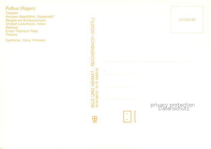 73110396 Putbus Ruegen Tierpark Gaststaette Rosencafe Rathaus postalisch nicht gelaufen Erhaltung siehe scans [NatalD47] KatCode: 11110013061028