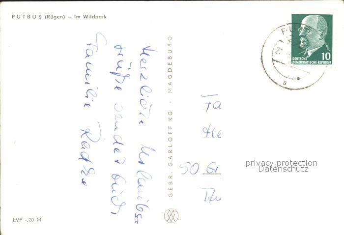 72181461 alte Postkarte Putbus Ruegen Wildpark postalisch gelaufen Erhaltung siehe scans KatCode: 11110013061028