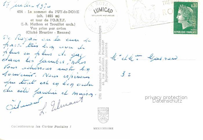 12663342 carte postale Puy de Dome Le Fliegeraufnahme Funkturm postalisch gelaufen Erhaltung siehe scans [AndreD76] KatCode: 11170063263065