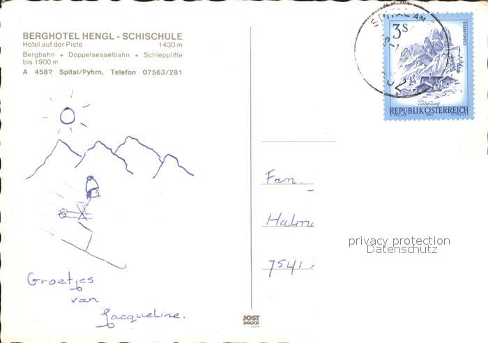 72271561 alte Postkarte Pyhrn Berghotel Hengl Skizentrum Wurzeralm postalisch gelaufen Erhaltung siehe scans KatCode: 11390