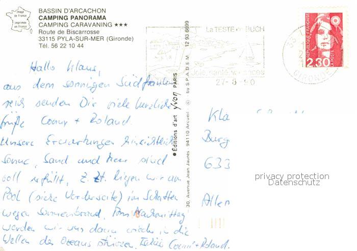 12868410 carte postale Pyla sur Mer Camping Panorama Strand Freibad postalisch gelaufen Erhaltung siehe scans [WerneD78] KatCode: 11170033633529