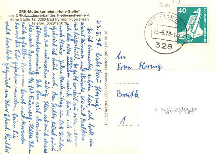 72948495 alte Postkarte Pyrmont Bad DRK Muetterkurheim Hohe Stolle postalisch gelaufen Erhaltung siehe scans [KathaD81] KatCode: 11110003252003