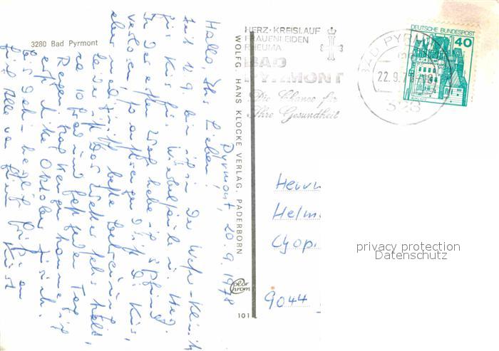 72773665 alte Postkarte Pyrmont Bad Weser-Klinik postalisch gelaufen Erhaltung siehe scans [AndreD76] KatCode: 11110003252003