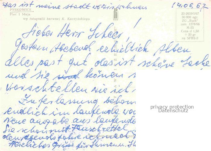 14105093 Pyskowice GLIWICE Gleiwitz PL Plac 1 Maja postalisch nicht gelaufen Erhaltung siehe scans [FriedD77] KatCode: 11410