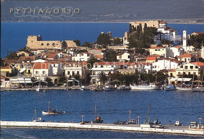 old postcard Pythagorio Hafen postalisch gelaufen Erhaltung siehe scans [AndreD76 kt121box]