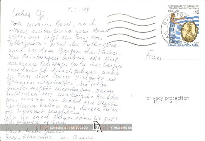 old postcard Pythagorio Panorama postalisch gelaufen Erhaltung siehe scans [AndreD76 kt121box]