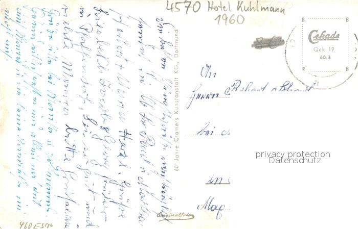 73709568 alte Postkarte Quakenbrueck Lange Strasse und Hohe Pforte m. Hotel Kuhlmann postalisch gelaufen Erhaltung siehe scans [LiesaD40] KatCode: 11110003459030