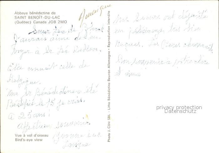 Quebec Abbaye benedictine Saint Benoit Du Lac Fliegeraufnahme postalisch nicht gelaufen Erhaltung siehe scans