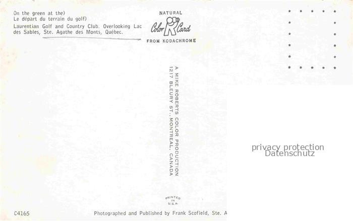 74011905 QUEBEC Canada Laurentian Gold and Country Club Lac des Sables postalisch nicht gelaufen Erhaltung siehe scans [FriedD77] KatCode: 14110