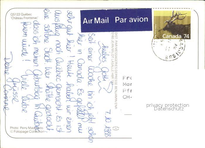 old postcard Quebec Chateau Frontenac postalisch gelaufen Erhaltung siehe scans [WerneD78 kt117box]