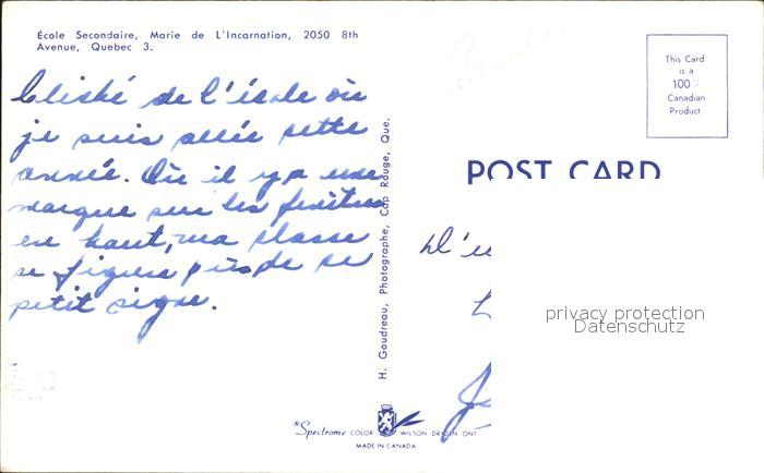 Quebec Ecole Secondaire postalisch nicht gelaufen Erhaltung siehe scans