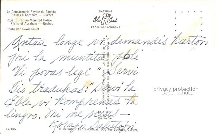 Quebec Gendarmerie Royale du Canada Plaines Abraham postalisch nicht gelaufen Erhaltung siehe scans