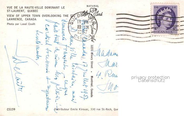 old postcard Quebec Haute Ville Dominant Saint Laurent postalisch gelaufen Erhaltung siehe scans [KathaD81]