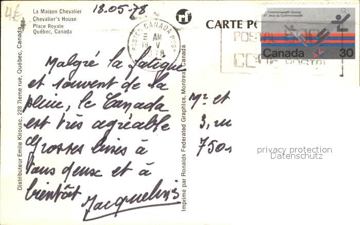 old postcard Quebec La Maison Chevalier postalisch gelaufen Erhaltung siehe scans