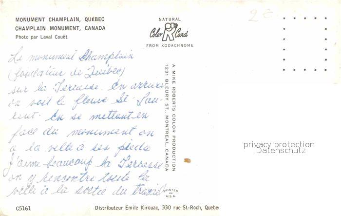 Quebec Monument Champlain postalisch nicht gelaufen Erhaltung siehe scans [LiesaD40]