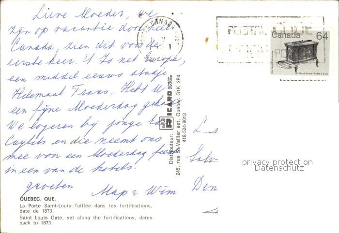 old postcard Quebec Porte Saint Louis postalisch gelaufen Erhaltung siehe scans