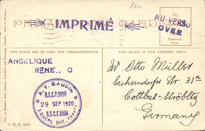 11112287 old postcard Quebec Rue Bonoventure postalisch gelaufen KatCode: 14110