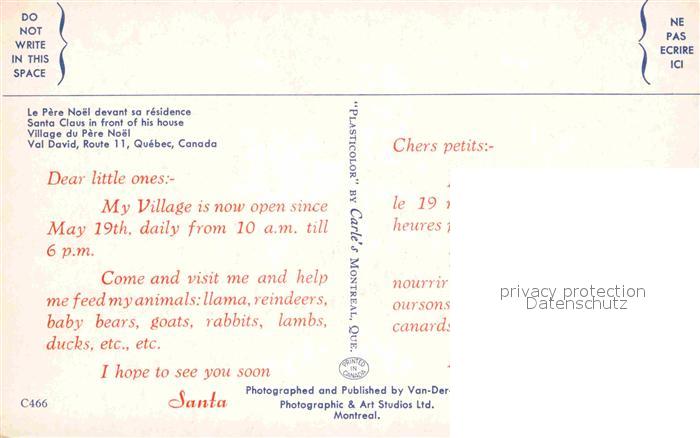 Quebec Santa Claus Village Pere Noel postalisch nicht gelaufen Werbekarte (keine Postkarte) Erhaltung siehe scans [KathaD81]