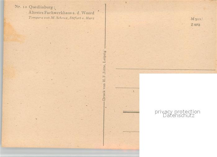 43498590 Quedlinburg Harz aeltestes Fachwerkhaus an der Woord Kuenstler Schewe postalisch nicht gelaufen Erhaltung siehe scans [KathaD81] Kath Katcode 11110015085235