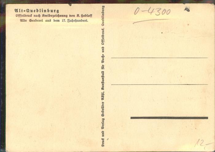 41347025 Quedlinburg Harz Alte Gerberei Kuenstlerkarte nach K. Hedloff postalisch nicht gelaufen gute Erhaltung Alte Ansichtskarte Postkarte hz_C Katcode 11110015085235