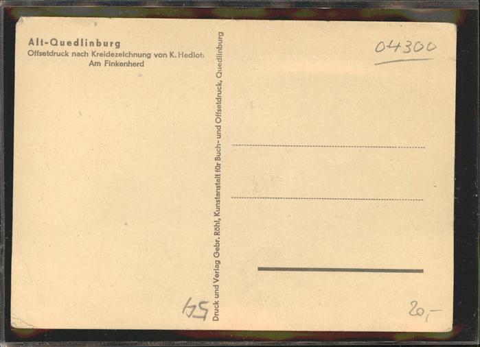 41347012 Quedlinburg Harz Am Finkenherd Kuenstlerkarte nach K. Hedloff postalisch nicht gelaufen gute Erhaltung Alte Ansichtskarte Postkarte hz_C Katcode 11110015085235