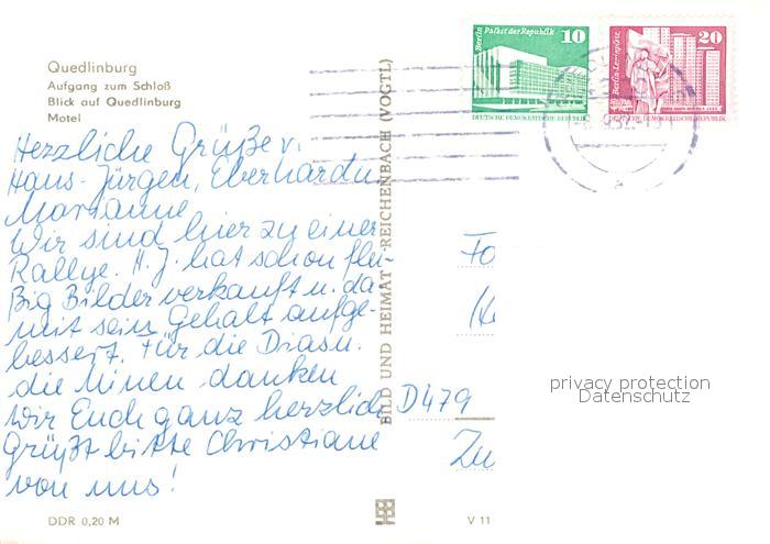 73036560 alte Postkarte Quedlinburg Harz Aufgang zum Schloss Motel postalisch gelaufen Erhaltung siehe scans [KathaD81] KatCode: 11110015085235