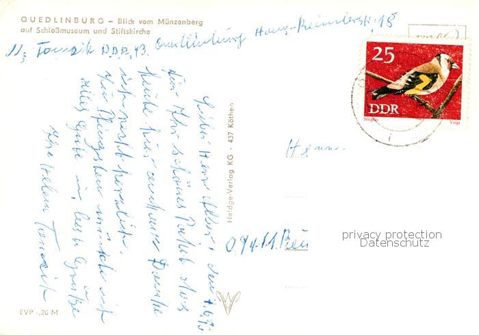 73835938 Quedlinburg Harz Blick vom Muenzenberg auf Schlossmuseum und stiftskirche postalisch gelaufen Erhaltung siehe scans [WerneD78] alte Postkarte Wern Katcode 11110015085235