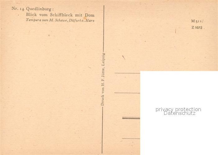 43498374 Quedlinburg Harz Blick vom Schiffbleck Dom Kuenstlerkrte postalisch nicht gelaufen Erhaltung siehe scans [KathaD81] Kath Katcode 11110015085235