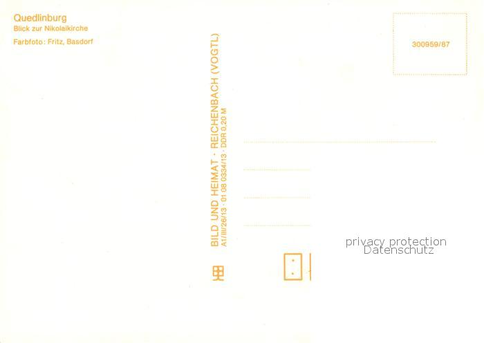73059302 Quedlinburg Harz Blick zur Nikolaikirche postalisch nicht gelaufen Erhaltung siehe scans [WerneD78] KatCode: 11110015085235