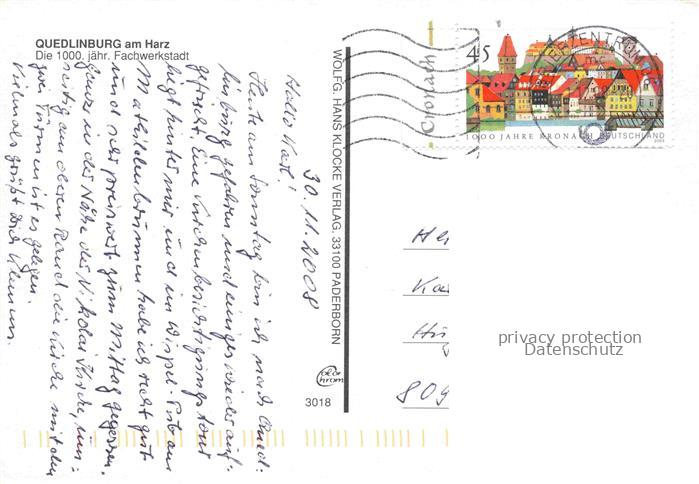 74109860 Quedlinburg Harz Fachwerkstadt postalisch gelaufen Erhaltung siehe scans [IrynaD87] alte Postkarte Iryn Katcode 11110015085235