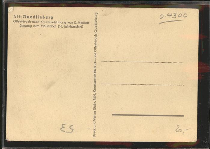 41347009 Quedlinburg Harz Fleischhof Kuenstlerkarte nach K. Hedloff postalisch nicht gelaufen Alte Ansichtskarte Postkarte hz_C Katcode 11110015085235