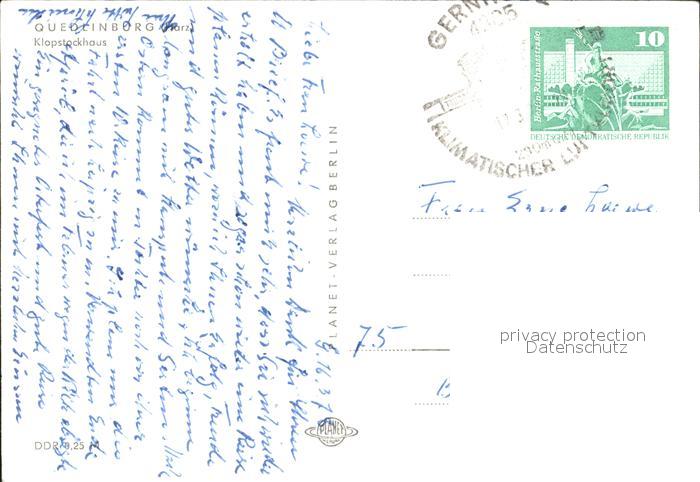 72299057 alte Postkarte Quedlinburg Harz Klopstockhaus postalisch gelaufen Erhaltung siehe scans KatCode: 11110015085235