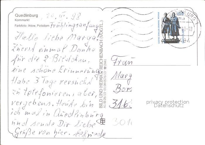 72322355 alte Postkarte Quedlinburg Harz Kornmarkt postalisch gelaufen Erhaltung siehe scans KatCode: 11110015085235