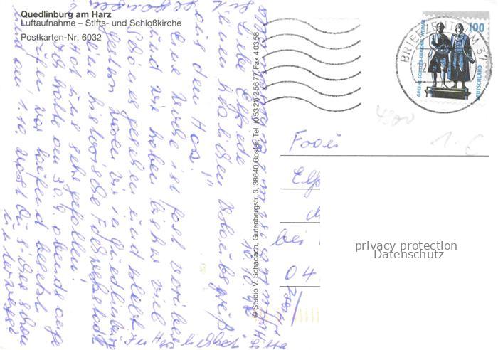 74109581 Quedlinburg Harz Luftbild Stifts Schlosskirche postalisch gelaufen Erhaltung siehe scans [IrynaD87] alte Postkarte Iryn Katcode 11110015085235