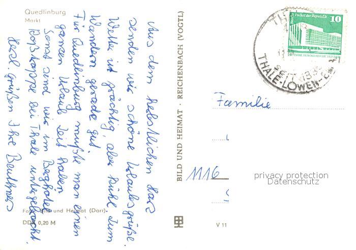 73071575 alte Postkarte Quedlinburg Harz Markt postalisch gelaufen Erhaltung siehe scans [WerneD78] KatCode: 11110015085235
