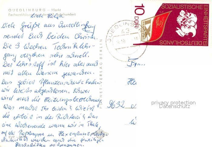 72925116 alte Postkarte Quedlinburg Harz Markt Fachwerkhaeuser postalisch gelaufen Erhaltung siehe scans [WerneD78] KatCode: 11110015085235