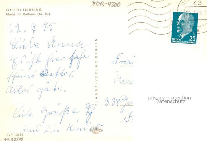 72929172 alte Postkarte Quedlinburg Harz Markt Rathaus postalisch gelaufen Erhaltung siehe scans [AndreD76] KatCode: 11110015085235