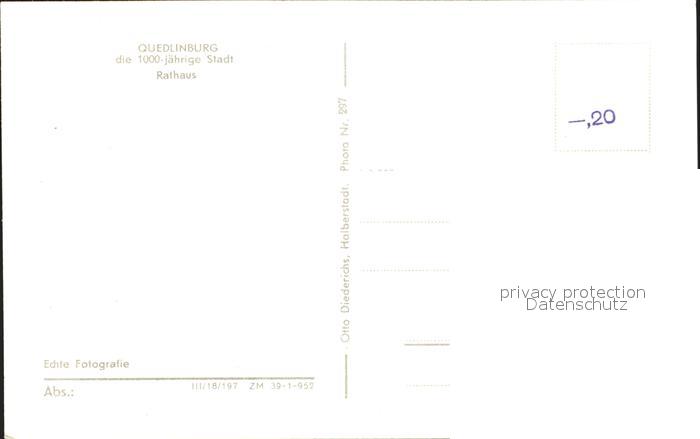 72368002 Quedlinburg Harz Rathaus 1000jaehrige Stadt postalisch nicht gelaufen Erhaltung siehe scans KatCode: 11110015085235