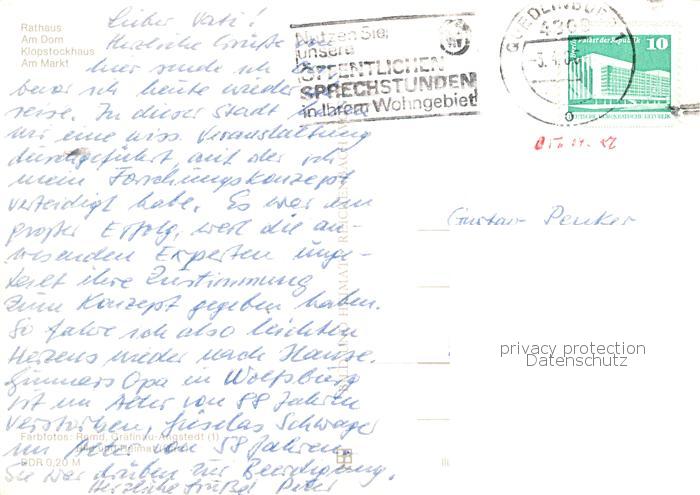 73863182 Quedlinburg Harz Rathaus Am Dom Klopstockhaus Am Markt postalisch gelaufen Erhaltung siehe scans [WerneD78] alte Postkarte Wern Katcode 11110015085235