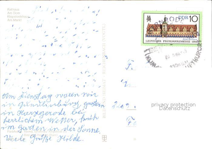 72370010 alte Postkarte Quedlinburg Harz Rathaus Dom Klopstockhaus Am Markt postalisch gelaufen Erhaltung siehe scans KatCode: 11110015085235